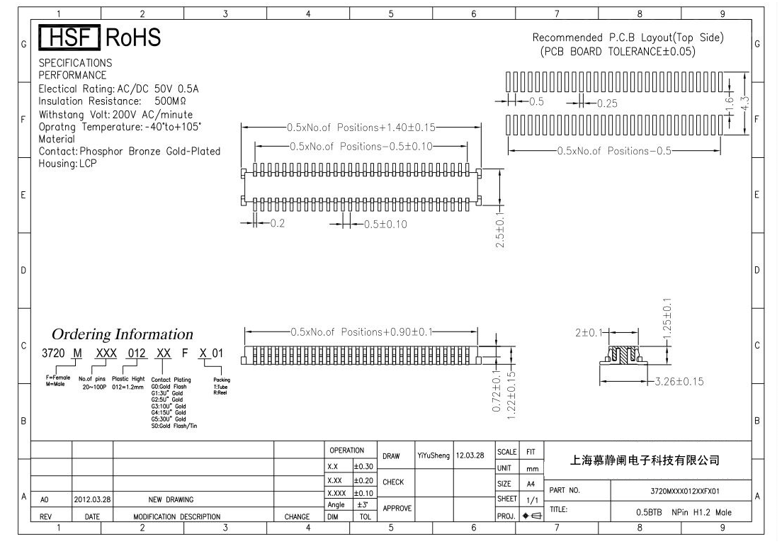 插针材料:黄铜或磷青铜;绝缘体材料:塑胶UL94V-0。