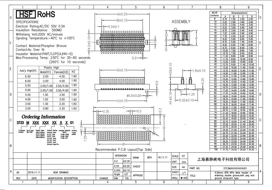 Max间距:0.5mm,0.6mm,0.635mm,0.8mm,1.0mm,